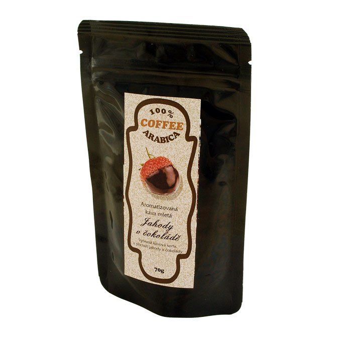Zloženie: mletá káva 100% Arabica, aróma čokoláda (1%) a jahody (1%)