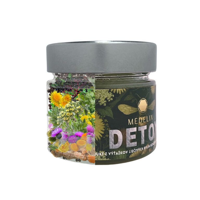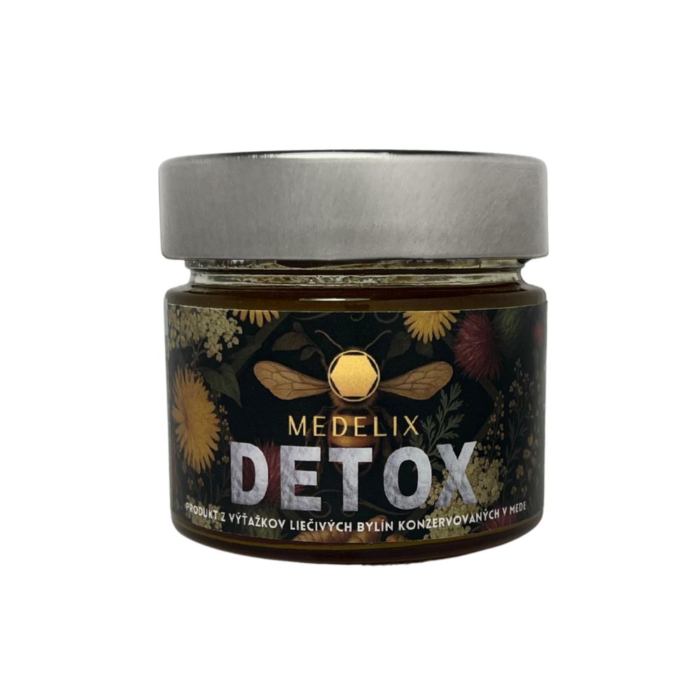 DETOX je funkčný výživový doplnok stravy vyrobený z výťažkov liečivých rastlín zakonzervovaných v mede BIO kvality. Výborne pomáha v boji s telesnými parazitmi, maláriou a veľmi dobre pôsobí ako prevencia proti vzniku mnohých závažných ochorení. Pri chorobe odporúčame začať ako prvý užívať DETOX a následne po 14-tich dňoch kúry pokračovať s ELIXOM.